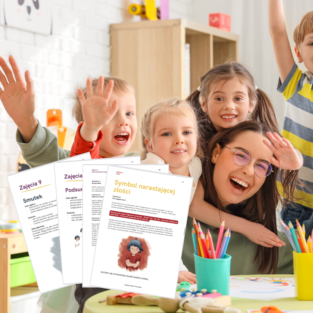 . Każdy scenariusz łączy się z odpowiednią historią z książki, np. zajęcia o złości po przeczytaniu „Rózia czuje złość”. To